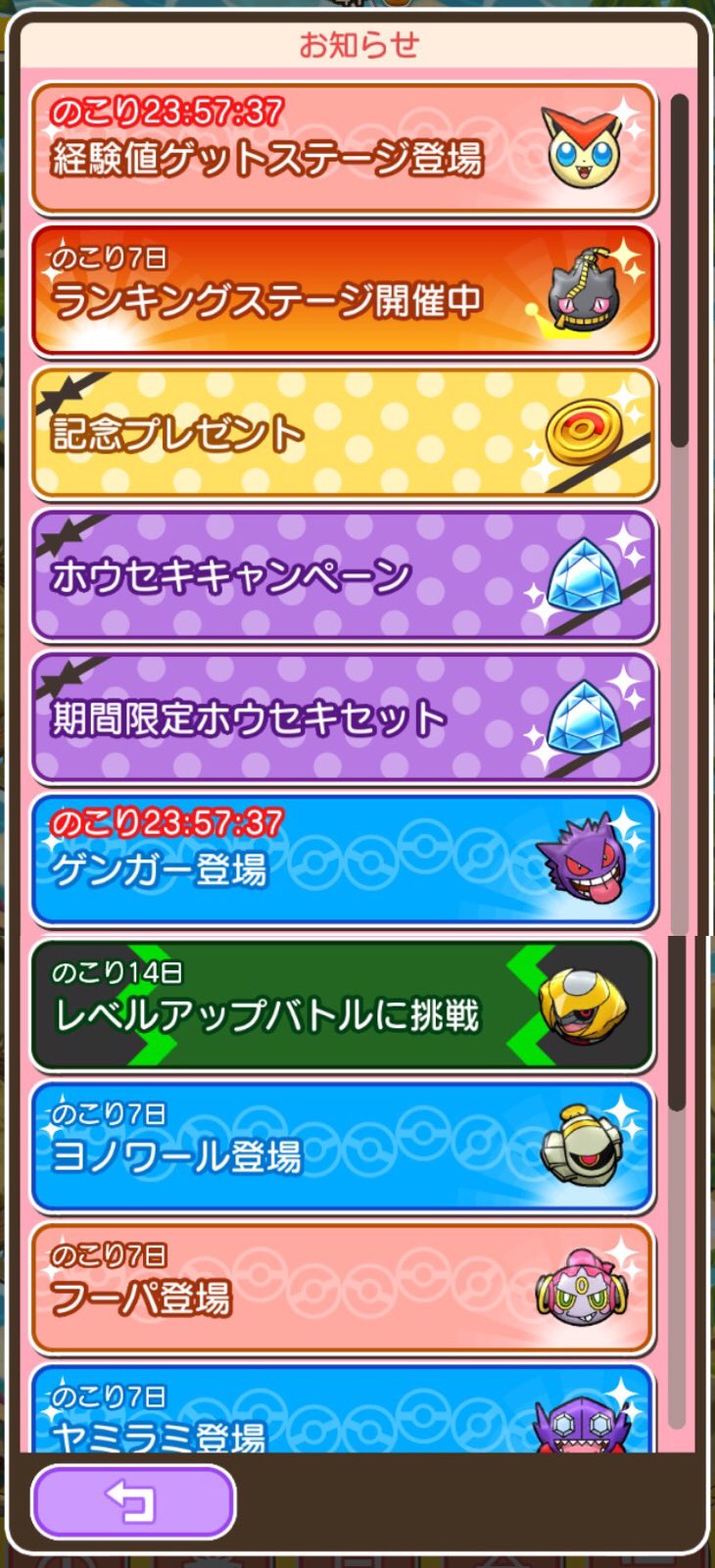 にかいち 今週のポケとるはメガジュペッタのランキングステージ再開催にギラティナのレベルアップステージ再登場 ゲンガーのハロウィン登場 そしてスマホ版は5000コインとライフ30個のプレゼントか スマホ版のライフのプレゼントはそろそろ別枠に