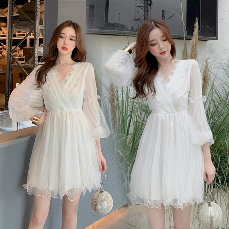 白ワンピース白カジュアルワンピース夏ワンピース韓国膝丈森ガール Onecarbay